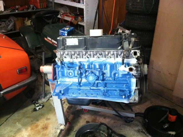 3. Below is everything i've got. Car its going in, Motor on stand, one side blasted and painted. New oil pan and competition gasket on. I'm about to tear the intake and exhaust manifold off, replace the gasket and paint it. Replace all the gaskets I can, oil pump, water pump, timing set, front and rear main seals and i'll throw it in. We shall see how it goes.