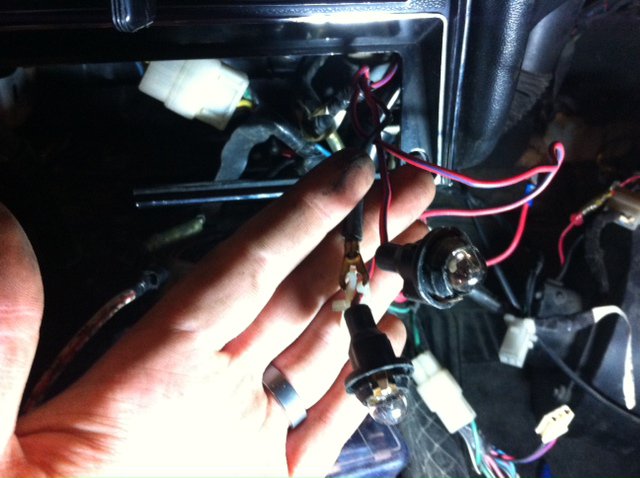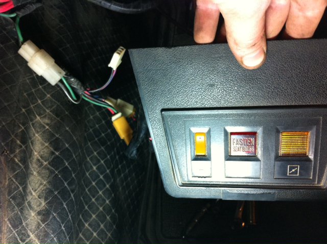 1st image - shows unknown yellow power and black ground disconnected which is part of a group of wires running to this gold box under the glovebox. Accessory relay? The other end of these wires follows through to the choke/seat/fog panel. I put power to the yellow and I could hear a tick sound but still no lights to the panel.