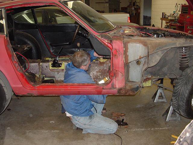 The floors are from Zedd Findings http://www.datsunzparts.ca/NewParts/summary.htm the frame rails are from Bad Dog http://www.baddogparts.com/ the rest of the patches are cut from old car hoods.