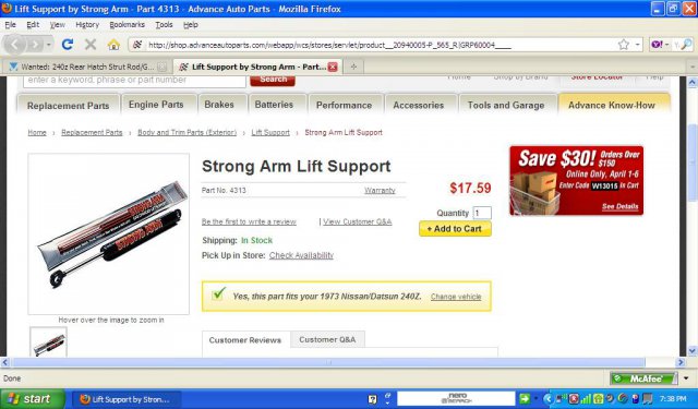 240Zs have a single strut. 260s and 280s have 2 struts. You can get new ones from Advance for $18.00