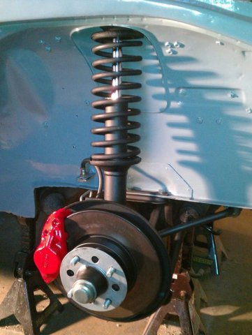 Its been a little while since I was able to do any work. Here are the latest pics of the front suspension put back together. This weekend I am going to run a new brake line out to the wheel. -Dave