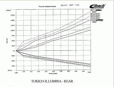 Hey guys! I found these shock dyno tests on honda-tech.com. Thus these are probably for Honda inserts, but might still be useful. Included are attachments of the shocks I thought were pertinent... full link here: http://honda-tech.com/zerothread/1104049 I was actually very impressed by the amount of adjustability in the Illuminas, albeit the curve is progressive at first, but ends up being digressive on the harder settings. There is still a bit of progressivity at the start in the first graph (for the fronts) no matter what. For the price (~$75/ea.) this makes me feel good about having chosen them as an entry level street/sport shock.