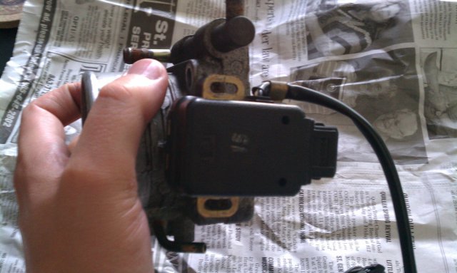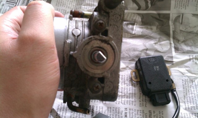 So I picked up a 1990 KA24E throttle body and TPS (TPS basically brand new) for $50 on craigslist for my 76 280z. I plan on going megasquirt and turbo, so I figured this is a step in the right direction, and something to keep me busy. I did a ton of searching and found a bunch of info scattered around about 240sx TB/TPS but figured I would try to combine some of the info here, as well as present a work-around for repositioning the TPS. This way, the stock wiring does not have to be extended or modified. - From what I found, the 280z uses a two switch TPS that has idle, off, and full throttle (white TPS below). At idle and full throttle, the computer adjusts gas flow accordingly. In the off position, (when neither switch is closed) no gas is flowing. If I understand the 280z EFI theory manual correctly, the gas is only turned off after the full throttle switch has been closed, and is then opened (as if the car is decelerating from full throttle to coasting). I dont think it would make much sense to turn off the fuel if you go directly from idle to coast, never touching the full throttle switch. Maybe somebody can clarify this part for me. - The automatic 240sx TPS only has one switch, the idle switch, you are either idling or you are not (red TPS below). The pigtail hanging off is a different signal than what Z cars use and is useful for megasquirt and other aftermarket EFI systems as it continuously varies resistance (voltage) with throttle position using a potentiometer. 280zx (only turbo I believe) also uses a two position switch, so the auto 240zx TPS can be used as a replacement. However, it seems some 280z owners have managed to use the 240sx TPS with varying degrees of success. It appears to be well known that the 60mm TB by itself does basically nothing for performance, however it MAY increase throttle response. It will definitely help if you plan on doing forced induction, stand-alone EFI with MAP (eliminating the z's restrictive AFM), porting head/intake, or any combination of these. It makes sense to start from intake/filter and work your way toward the head to gain the most performance for your money. One issue with using the 60mm 240sx TB is that it rotates the TPS 180 degrees, so that the plug is now facing the front of the car when it is mounted in a Z. If you are still using the stock EFI, this forces you to extend or somehow modify your TPS wiring. Looking at the throttle body itself, I found away around this issue. It may be debatable as to which is more work, but since I hate messing with wires, and stock wiring, I decided to give this a shot. I first followed the disassembly on Gray's Garage http://www.graytechsoftware.com/garage/tbs_linkage.asp Basically once you remove all the springs and linkages from the 240sx TB, there is a "metal stopper" as he calls it at the end/bottom. This is the part of the TB that actually limits the rotation travel. By removing this (somewhat difficult and tedious because it is wedged onto the shaft) and rotating the spring/linkage shaft, you can effectively rotate the TPS sensor shaft on the other side 180 degrees (Sweetness). 1. First picture shows the orientation of the TPS shaft before modification, it is facing primarily towards the outlet side of the TB. 2. Carefully slide the metal stop plate up the spring/linkage shaft using whatever tools you have (I used a flat head screw driver, hammer claw, and then my fingers). It gets easier as you go, but the key is to be very careful and not damage anything. ROTATE the SPRING / LINKAGE SHAFT (NOT the stop plate) 180 degrees and put it back on, DO NOT FLIP the stop plate. Before you press the stop plate back on, make sure it will end up between the stops of the throttle body that the stop plate hits. Also make sure that the TPS shaft is primarily oriented toward the inlet of the TB. Press the stop plate back down to the bottom using a metal tube (or improvise with something else) and hammer. It may be wise to do this before cutting and tapping the shaft as directed on Gray's page, this way if you damage the threads you dont have to worry about it. DO NOT HAMMER TOO HARD, as there are bearings in this assembly. You may damage the bearing balls, races, or retainer by hammering with too much force. It is better to hammer with less force, and do it more often. Once the stop plate is back down to the bottom, verify again that everything is in the right position. 3. Notice that you now have a stop plate that rotates between the stops on the TB, and a TPS shaft that is oriented toward the inlet of the TB. 4. Whatever TPS you decide to use (280z, 280zx, 240sx) when it is mounted, the plug should now be facing the rear of the car. Modifying the wires is no longer needed!
