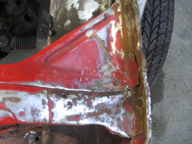i pulled the engine and trans about 2 weeks ago and after cleaning the front rails found them to have a ripple from the accident. the wire wheel also showed me that the passenger side frame rail is severly pitted and has 2 holes in it where it meets the firewall. i know they sell new rails but its not a repair id feel comfortable with myself. and to get the rails fixed and still have a jacked up front end makes me wonder if i should just find another to start with and sell all the parts i have laying around.