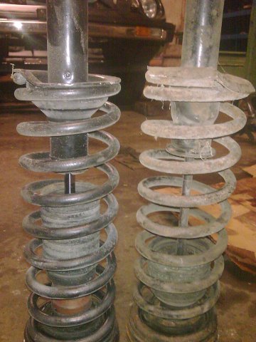 hi, following problem: My 280zx 2+2 is lower at the rear axle. I decited to put in new stronger Springs. Today i removed the Rear shock absorbers and wantet to put i an old one with spring to have the car moveable. When i watched both i saw the 2 shock absorbers have different size (Picture) I bought the car like it was, dont kwon who repaired it before Is it possible that someone put i wrong absorbers?! springs seam also little different what is the OEM absorber? can someone see it??