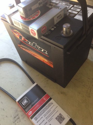 17. battery arrived, spark plugs and belt.... i was kinda excited about the belt!!!!