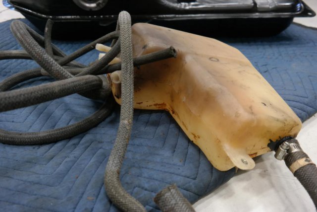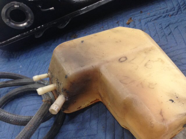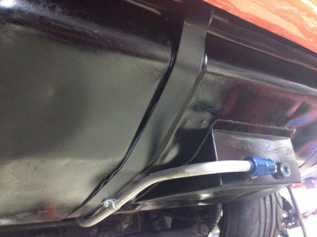 should have the fuel system mods. completed shortly, then fuel tank will be reinstalled. I'm confident that this will work. It's basically the same system that's used on my race car and I've never had any difficulties with overflow/evap. The 240z evap/overflow and hoses are probably one of the reasons the interior smells of fuel sometimes. One leak and the cabin will fill with vapor easily. IMO, everyone needs to get rid of the factory system!!! Running fuel across the interior of the rear clam is just a bad idea, IMO. With any left or right turn, there's no way to prevent fuel from running up the evap. hoses on either side of the tank. Those hoses are now eliminated.