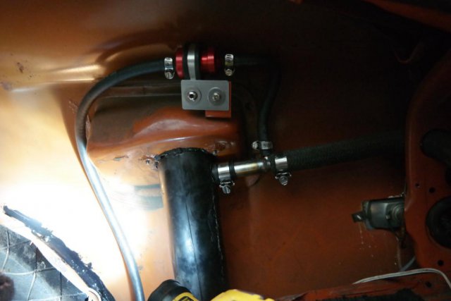 fabricated the T for the fuel evap system. Essentially the factory system is still intact, but much simplier hose routing.....