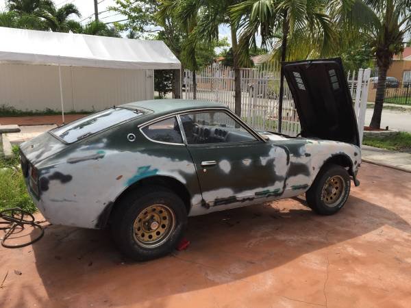 So I've been debating pulling the trigger or not and have finally found my favorite year of the 280z's and i must say in decent condition with minimal rust and for $2,000 must say it was definitely a good find. On to the details..The frame has 53,909 original miles and came with vin matching Motor and Transmission (4spd) previous owner also threw in a 5spd transmission. The motor was rebuilt using flat top high compression pistons, all work done by previous owner. Most of the rust found on the car was surface rust but no real rust except from the Radiator support in the front which seems to be a bit more severe. The interior is complete although the car has a missing front windshield so the interior has gone to shit but the good news the floor panels seem to be in great condition, found no holes on the underside of the car. Now onto the Project - My intentions are to do a 2JZGTE VVTi swap with the Getrag v161 6 speed transmission and a ford 8.8 differential (still haven't decided on gearing). I know in order to surpass the 1000whp mark I'm going to need to increase head flow, pistons, rods, springs, valves (3 angle valve job), retainers, cams, single turbo exhaust manifold and lastly the turbo still debating but will AT LEAST be starting with a 72-85. As far as suspension goes definitely open to suggestions. ....and some pictures