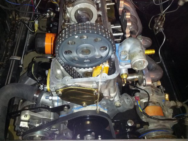 I built my timing chain wedge out of hard wood I had laying around my garage. I installed it using the straight side along the drivers side of the motor.