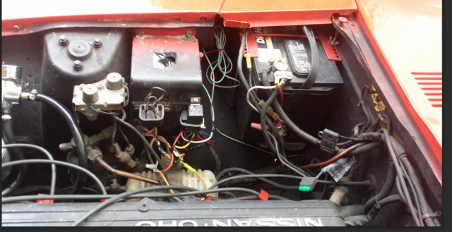 Hey guys, just made a fresh account on the forums, figured it was about time to join in on the fun. For the past 6 months my Z has been having a shit storm of electrical and fuel problems. So where do i begin, I bought my 1977 280z about 9 months ago, i used to drive it to work a good 30 miles each way and it never gave me any issues until about 2-4 months in. on a rather warm day I was showing off my new car to a friend of mine, another datsun enthusiast, when all of a sudden i start losing power and my tachometer roughly drops. I could keep it alive for a bit if I would clutch in and work the gas but all in all it only delayed the inevitable. To get it home i cycled the key a few times, waited a few minutes, and after a handful of failures i managed to get home without any more hiccups. from that point the health of the car deteriorated very slowly over a long period of time. Now before i got this car I wasnt very mechanically inclined, I have basic skills, I know how to take peices off and put them on again, still learning. I knew i would get problems down the road and I was prepared to make the necesary repairs. I used the forums to point me in the right direction, and i know its not the right way, but i basically used hints of snippets of information to choose which replacement part i would throw into my car. I started fuel injector cleaner which seemed to work for like a week. after that i put on a fuel pump because it seemed like I wasnt getting pressure, I did not put a guage on or checked the pressure, i just put it on. I know, slap myself. (didnt learn either). I drove for a while then again the same problem would occur, which i then began to figure out may be vapor lock, very possibly still is. From there I got a oem replacement fuel regulator, which also seemed to work for a while, but ultimately failed, So as weird as it sounds, I chose to do an oil change about that time, which really did stop the issue of my car. I drove around for a few months on a leaky head gasket, I had it checked by a shop they said it was fine so long as i didnt get the sluggies in my radiator or coolant in my oil, which i wasnt. I waited for some help before I replaced the headgasket, got that done way later than it should have taken. drove drove drove and then guess what happens? it went kaput again. From that point i replaced the Afm, distributer, coil, alternator, 2 fuel injectors, and very recently i put an adjustable fuel pressure regulator on and set it down to 30-36 varying.I forgot to mention, before i replaced the afm, my tach would go ape-shit, my fuel injection relays by my foot would click to high hell, and eventually my fuel pump begain to stay on. the quickest solution i saw was to disconnect the battery. for about 2 weeks i rode around with a super-acces panel over my batery. I had my local datsun guy hook up my fuel pump on a stand alone system with a kill switch and a relay and all those goodies as a temporary fix but now my afm no longer controls my fuel pump shut off. I tried restoring the factory wires after i replaced the AFM but the same problem where the fuel pump kicks on automatically still occurs. Bare with me guys, im just trying to give any and all background of my vehicle so we can slim down the options When I had bought the car it had a sterio system put in with an amp and subs, it also has power locks, windows, and an alarm system. All of these I am suspicious of because sometimes my car will shut off if i close my door too hard. Recently the windows are intermittent, the sterio is on "PROTECT" because of a short somewhere, I want to just gut the whole system. Air conditioning unit has been deleted, heater doesnt work, horn deleted because im pretty sure it would short out and shut down the car. I apologies if this post makes you angry because of what a green horn i am, but if you have the patience to help me save my datsun..... It would be great! Let me know what im going to have to clarify because i know i will. thanks in advance ***The image in the thumbnail is of the mickey mouse wiring from the previous owner, along with the standalone fuel pump system tucked in next to the battery. Before the fuel circuit was installed the old wires that originally sat in the box (i want to say fusible links), we're just cut and leading to nothing*** (also in the image the wires that are disconnected hanging loose ( red yellow white white-red) was my attempt at restoring back to factory setting, so as of right now the fuel pump does not turn on with the kill switch or ignition )