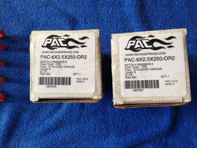 One pair of lightly used PAC Racing coilover springs. 2.5" inner diameter, 6" free length, 250 lb/in. Orange powder-coated. $75 shipped anywhere in the U.S. Thanks for looking.