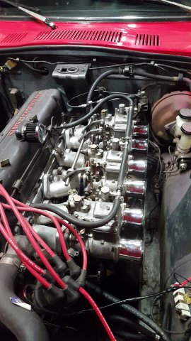 I have been having so many issues tuning my triple OER/SK dcoe 40 carbs. I recently bought these carbs secondhand. I have been running into issues with idle speed, and synchronizing. The car runs very rough and the engine shakes quite a bit. Problem #1 I attempted to synchronize all three of the carbs but ran into many issues. The carb (#2) in the middle seems to be drawing in a lot of air compared to the carb (#1) and carb (#3). This is with all the carbs set to the same idle speed screw distances. I suspect that carb #2 has a bent throttle shaft or butterfly, but the butterfly opens smoothly with no obstructions. I also checked for vacuum leaks and there doesn't seem to be any. Problem #2 When I put the synchronize tool onto any of the carbs the idle drops and the carb drools fuel everywhere, like a toddler drooling. I am not sure if that is normal or not. Every carb seems to do that when I hold the tool up to the throat. Also when I hold up the sync tool to carb#2 the engine almost dies out. Desperately, trying to find a solution I have to increase the idle speed of #1 and #3 in order to match the flow of #2. This resulted in a super high idle speed of about 2000rpm. Problem #3 Carb #2 seems to also be running much leaner than the others. I had to turn the idle mixture screws a few more turns than #1 and #3. please any advice is welcome.