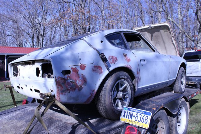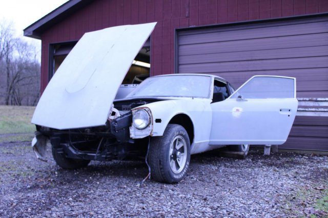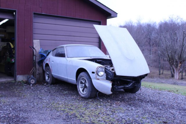 This is a build thread to document the progress on a 1977 Datsun 280z 2+2. The previous owner had started stripping the car with intentions of restoring it but it ended up just sitting in a storage container. Before that, the car sat in someone's yard because of a lien against it and eventually a tree fell on the back portion busting out the rear glass and leaving a nice dent. Because the car has been sitting for so long, it has a bit of rust but nothing structural, like the frame rails, is damaged. We've never done any car restoration work before so any pointers would be appreciated. The long term goal is to swap a LS v8 engine (probably a 5.3L or 4.8L), upgrade the suspension and brakes, and have a solid daily drivable Datsun. Below is a list of what we have done to the car already: -Stripped the interior and exterior -removed the sound dampening material with some freeze spray and an air chisel -removed the engine, transmission, and engine bay wiring -misc metal work (cutting out the usual Z rust and welding in patch panels) -coated all internal frame rails and cavities with east-woods internal frame rail coating or POR-15 Here is what we started with. Inspiration / Goals Pulling the engine - relatively easy. When you don't have a load leveler, you just use screw drivers to make sure the chain doesn't slide! Hopefully, the steering rack will be salvageable. Cutting out the rust (floor pans, battery tray, and a big spot in the bumper area) Here's some of the welding / patch panels. We used weld through primer so the the welds won't rust through. Battery Compartment The front nose area - patched on both sides driver's side floorpan (not nearly as bad as passenger side just one patch panel near the seat mount). Passenger floorpan - we fabricated a floorpan that was mainly plug welded in place and also replaced a rusty spot in the trans tunnel. a shot of some POR-15 rust convertor work underneath the cowl panel. That brings the project up to present time, lots of work to do still.