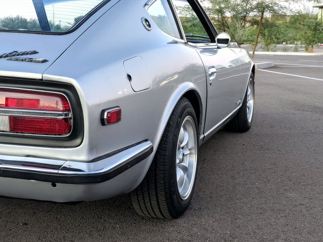 Hi guys. I hadn't come across your site before (my loss), the fine folks at Z Car Club of Washington suggested I post my car here. 1973 Datsun 240z in beautiful condition, ready to drive and cherish. You experts will have seen mods like this before. It's been fitted just a few months back with a 350ci Chevy crate V8 motor. Tidy install with T5 5-speed manual transmission, R200 differential, new clutch, flywheel, driveshaft, and aluminum radiator. Body recently repainted in its original silver, stock slim bumpers without overriders remain in place, and chrome bullet-style side mirrors added. Further alterations include 15x8" Rota wheels, lowering springs and new struts, 3-spoke Raid 1 steering wheel with Datsun horn button, fixed bucket seats with suede inserts. Goodyear Eagle tires dated 2015, plenty of tread. The passenger side taillight is cracked, though I have a replacement unit to swap. Also have chin spoiler for fitting if desired (I prefer without). Factory stereo and clock don't work (I just use a bluetooth speaker). Always garaged, no rust or other trouble to the best of my knowledge. I have the engine paperwork and clean title. Basically this is a gorgeous car that you could drive every day or keep for special occasions. I actually have not owned it very long, the only reason I'm selling is that my new house has a steep curb/driveway (both up and down) and I can't get this car in/out without dragging the exhaust, even with my curb bridge in place. I'm very sad about that, but it looks like it's time for a new owner to enjoy the car. I am happy to provide more photos/video or show the car to anyone interested here in Seattle. $19k OBO