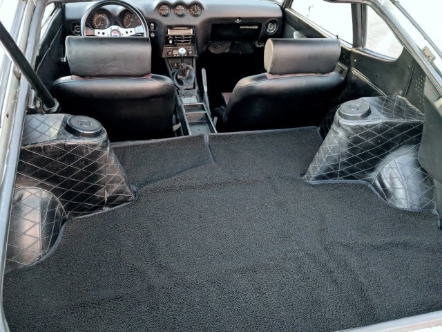 So a friend of mine recently told me about a 1975 280z for sale... The car, for my area, was one of the best I've seen. Sure, it wasn't totally together or running, but the body was straight, didn't need much body work, and barely had any rust anywhere (the worst of the rust is on the inside of the hatch by the corners; worst of the body work is the pass. rear quarter). It was kept in storage and hadn't seen the weather for 30+ years, and at some point had a 350 SBC and 4 speed auto swapped in. The suspension has been refurbished a little; new bushings and shocks as far as I know. Original glass with no cracks or chips that I can see. The dash is cracked (pretty bad in some spots). The car came with pretty much all the stock parts that weren't installed on the car (trim pieces, carpets, lights, door handles, etc.). Needless to say, I bought it. I haven't done too much to it yet, just trying to get it situated for now and come up with a plan for where to start. I have some ideas but nothing set in stone yet. I'll try to keep this thread updated as often as possible with what's going on. For now, here are some pictures and a video from the day I picked the car up. If the pictures show up small, let me know. I can try re-uploading larger ones. Video Link: This is the worst of the body damage. It was explained to me that this was to fill in where the bumper wrapped around, as well as some trim holes
