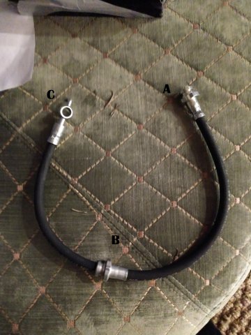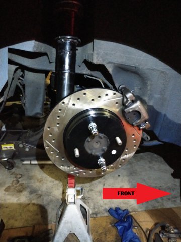 Hey guys, Sorry about posting this in the FAQs first, didn't see what category I was in. I recently got the Zcardepot.com Rear disc brake conversion kit, the sport one with the drilled and slotted discs. It uses a maxima caliper. They didn't send me any install information, just a box of parts. I have searched around and haven't found anyone who has documented the install. I did my best to install it how it makes sense, but I want to make sure that it is correct before I bleed the system and drive the car. I've posted some pictures below of my install, sorry for the lighting. I usually do all my work with a headlamp on, so pictures are either too bright or too dark..... I posted a picture of the brake line included, as well as letters showing where they are located on the installed caliper. I used the factory bracket to hold the middle of the brake line fitting. I also used the caliper with the R for right side on the right side of the car. I literally couldn't even find info on how the pads are supposed to be installed. They seem to be left/right specific, as the pad touching the caliper piston has a large tab off the back of it that sticks out. Mostly I am wondering: 1. Is the caliper even in the right position? 2. Is the brake line routed correctly? 3. I read that to make the hand brake cables work, i should swap them across the car so they are short enough to use them on the front of the disc. That is my plan, but have yet to do it. Is it correct? 4.Is there anything I am missing documentation-wise? I can't even find a maxima caliper swap guide. The one I found has broken picture links, so it isn't much use. Thanks in advance!