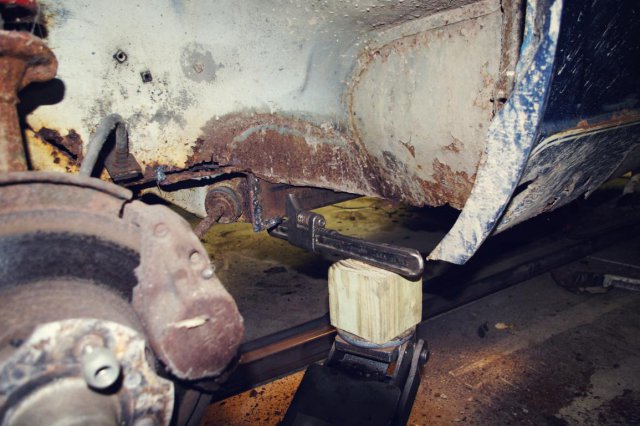 Long time lurker turned builder. This thread will be slowly updated and the build may not be the most interesting, but I'd like to share/document. I've used this site for ideas and daydreams for about 8 years, so thanks everyone! My canvas is a 1970 series 1 240z with period modifications. Today was the first day I actually started work on the car, previously I was just trying to get the car running a little better by cleaning and rough tuning the carbs. I started by removing the previous owner's attempt at making a floor.... This left an even larger hole in the floor, perfect for cooling you down on a hot summer's day. The floors were cut out when I bought it and 2x3 frame tubing welded from the TC bracket to the rear rails. Unfortunately the rails were not even close to level, so that had to be fixed. One side almost leveled, but the floor and main frame rails are just the beginning... Time to save up a bit to buy an engine hoist.