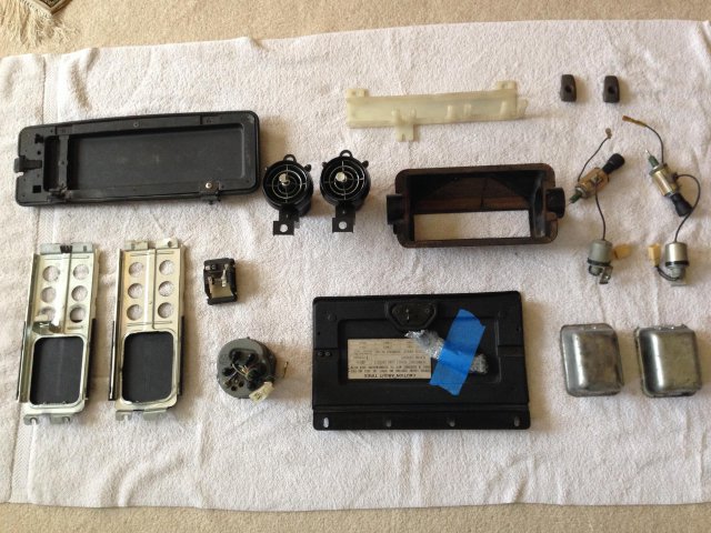 Description Various interior pieces for sale. All pulled from a 1973 early-model 260 or a 1974 late-model 260. Most in decent physical and operating condition. All prices listed do not include shipping -- I will use the most economical USPS flat rate shipping available. Thanks for looking. - ashtray cover and mounting bracket, two available (note the different configuration on backside): $10 each - ashtrays, two available: SOLD - glovebox door, includes the side-mounted retaining bracket and screws: $15 - cigarette lighters, two available, both in working condition: SOLD - overhead dome lamp, includes bulb, working condition: SOLD - ammeter/fuel gauge, pulled several years ago when converted to voltmeter, unknown working condition: $10 - fresh air side vents, two available, one functions nicely/the other has a broken pull tab for opening/closing vents: SOLD - center console armrest, spring and latching mechanism in good working condition, one mounting bracket was repaired years ago: SOLD - center air handler for center vents/defroster: free with any purchase - white plastic mounting bracket for dash harness: free with any purchase - small plastic coat hangers (that mount behind drivers and passengers seats), two available: free with any purchase FIRE SALE.....PACKAGE DEAL: $40 total for everything remaining, shipped anywhere in the U.S! $40 for everything, with free shipping!!