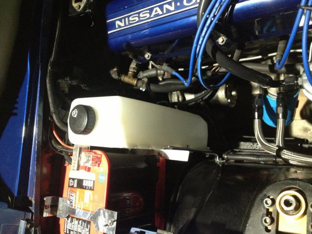 I want to share with everyone my DIY intercooler sprayer. I went to find a windshield fluid reservoir from a junkyard but couldn't find anything that I liked. Then I ran into this: http://www.midwestbusparts.com/index.php?main_page=product_info&cPath=16_319&products_id=2046 My Streetsmart boost controller controls a relay that powers the built in pump and activates at certain boost pressure or RPM. I made a bracket from cutting up a straight price of aluminum from the Home Depot and bolted it to the factory battery tray and a factory hole in the fender.The size is awesome and it fits perfectly using factory mounting holes. I have two patio mister nozzles each attached to the front license plate mounting tabs. With my setup, if I put them higher than this, the water sprayed all over the hood/engine leaving spots every where. This initially created a syphon when first kicked on as well but I fixed that with a simple anti syphon/drip valve designed for backyard misters. Theses where hard to find ironically and only found them on Alibaba Express and I had to buy a 50 pack for $10 but only needed one. Windshield washer fluid has worked the best when it comes to minimizing water spots under the hood. Alcohol would be better but washer fluid is cheap. I haven't measured the benefits yet but when I do I'll post it, I can't imagine it's not effective. It drains quickly if I set the boost controller to activate it at lower psi, slower if set to higher pressures. Same would go for RPM triggering. This same system can work with a basic switch versus using an electronic controller if so desired.