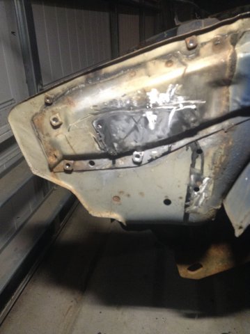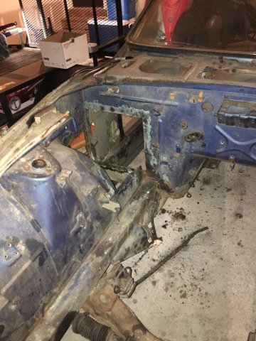 This is a build thread to document the progress on a 1977 Datsun 280z 2+2. The previous owner had started stripping the car with intentions of restoring it but it ended up just sitting in a storage container. Before that, the car sat in someone's yard because of a lien against it and eventually a tree fell on the back portion busting out the rear glass and leaving a nice dent. Because the car has been sitting for so long, it has a bit of rust but nothing structural, like the frame rails, is damaged. We've never done any car restoration work before so any pointers would be appreciated. The long term goal is to swap a LS v8 engine (probably a 5.3L or 4.8L), upgrade the suspension and brakes, and have a solid daily drivable Datsun. Below is a list of what we have done to the car already: -Stripped the interior and exterior -removed the sound dampening material with some freeze spray and an air chisel -removed the engine, transmission, and engine bay wiring -misc metal work (cutting out the usual Z rust and welding in patch panels) -coated all internal frame rails and cavities with east-woods internal frame rail coating or POR-15 Here is what we started with. Inspiration / Goals Pulling the engine - relatively easy. When you don't have a load leveler, you just use screw drivers to make sure the chain doesn't slide! Hopefully, the steering rack will be salvageable. Cutting out the rust (floor pans, battery tray, and a big spot in the bumper area) Here's some of the welding / patch panels. We used weld through primer so the the welds won't rust through. Battery Compartment The front nose area - patched on both sides driver's side floorpan (not nearly as bad as passenger side just one patch panel near the seat mount). Passenger floorpan - we fabricated a floorpan that was mainly plug welded in place and also replaced a rusty spot in the trans tunnel. a shot of some POR-15 rust convertor work underneath the cowl panel. That brings the project up to present time, lots of work to do still.