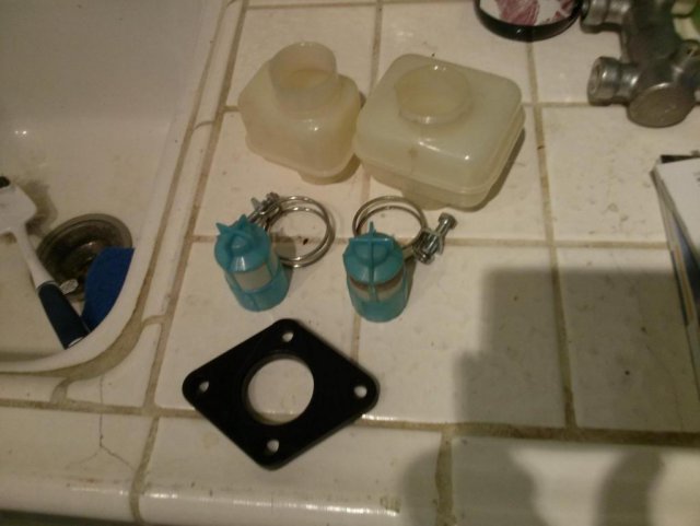 I ended up buying a 15/16 280 MC from Matt Hurr a while ago here. I am upgrading to 4x4 S12+8 calipers front, and 240sx rear. I currently have the stock 240Z MC and when I opened the box this is what I had . . . MC Fluid Cups Filters Fluid Cup brackets (to tighten around openings) Now, I noticed that I didn't have any of the bleeder valves, what type do I need to buy to put into the SIDE of the MC? Can I just take the Front and Rear Lines out of the bottom of my stock 240Z MC, and run them into the bottom of my new 15/16 MC? Do I need to buy any adapters? Finally I see a small hole on the opposite side of the MC's bleeder valves. It looks like a screw can go into there, but there is none. Do I need a screw for that hole? Bench Bleeding When bench bleeding, I know that I loosen the bleeder valves and have hoses going from them back into each respective cup. But what about the bottom holes (the holes that the actual brake lines connect to)? Will I need to block those? I will be doing the bench bleeding OFF the car, so I won't have any lines to block the bottom holes. I was thinking of doing the BB on the car, but thought it would be better to do it off to be able to do it slowly. But, please share your thoughts. I've already searched and read and found directions. But no-one talks about the bottom holes when BB off the car. Thanks Everyone for the help!