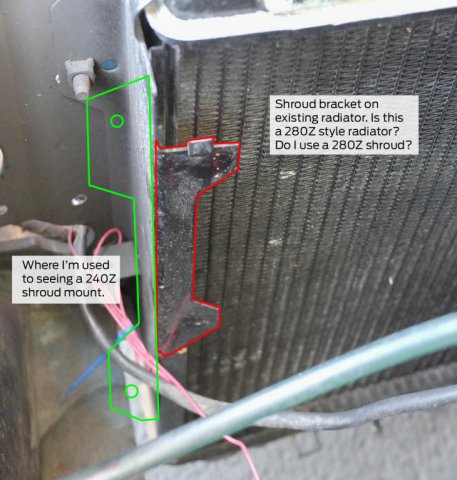 Hello, Yesterday my radiator cracked and spilled coolant all over a mountain road. I'm now looking to replace with a 3 row aluminum unit. The only question I have is about this particular unit on ebay: http://www.ebay.com/itm/70-75-NISSAN-DATSUN-240Z-260Z-Z-3-ROWS-ALUMINUM-RACING-RADIATOR-RED-FAN-S-HROUD-/150951825762?pt=Motors_Car_Truck_Parts_Accessories&vxp=mtr&hash=item23256e1162 It looks like the fan shroud is blocking the radiator except where the fans are. Is this ok? I could also get a radiator without this fan/shroud combo and just get some universal electric fans that zip tie to the radiator. Like this: Is that fan shroud helping by accelerating air through a smaller opening or just blocking the flow? If anyone has any experience with this particular ebay radiator that would be of great help too. Thanks