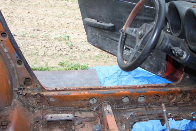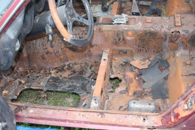 Hello, I'm Agita. I just bought a 240z that is in decently bad shape. It's rusted pretty bad in places and the driver's side panels will need to be replaced. The hood is damaged where some idiot used a crowbar to open it..... not kidding.....what a jerk. Most all of the interior plastic panels are in really good shape, one or two have small cracks that I'm not entirely worried about. One has two holes cut out for speakers..... sadly. I bought a whole driver's door in good condition minus a rust spot the size and shape of a quarter. Much better than the giant dent in mine. I also picked up a cowl that was without damage to replace the damaged one where the idiot with the crowbar used it as a brace to pop the hood. It's a 1970 240z. HLS30-02603 made in March of 1970 I've lurked here for a long while but now I'm gonna jump in. Lots of pics. Please feel free to comment or point anything out. I'm learning and researching as much as I can but I'm far from knowledgeable. I have lots of pictures and am willing to take a pic of anything you would like to see in specific. OK, I don't really know where to start, but the first thing would be the driver's floorboard. I've read about it a lot, and payed close attention to tutorials and all forms of processes listed here and elsewhere. ( feel free to link suggestions, I love reading about it ) I'm reasonably certain that I can replace the floorboards without problem, but I'm concerned about where the seatbelt bolts in near the door. The entire panel twisted out when I went to take the seatbelt off. (see the pic below) Is it okay to just weld in a strong panel then make a place for the seatbelt? Lots more, but lets start there and see what you guys think.
