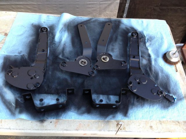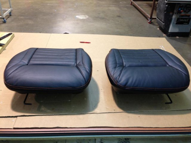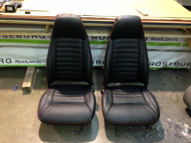Here is how I refinished my seats: I stripped the paint off the frames, used the POR marine cleaner, then used the POR metal etcher, then painted with POR-15 I used metal wire to tie the seat springs back together I used thin carpet squares on top of the seat springs to protect the foam I recovered the lower parts, clamping the inner wire with hog rings to the frame underneath. Tip: heat up the covers in the sun first I made new wires to hold the upper portion to the seat back, and fastened with hog rings. I placed a plastic bag on top to make fitting the cover easier. I pulled the vinyl covers onto the top. I got these covers from Ebay for $200 and was very happy with the quality. I requested this design, with the vent grommets eliminated and orange stitching. I cut out new rubber guards. I repainted and greased the mechanisms, then reattached them to the seats. Tip: use an impact driver, not a regular screw gun, or drill. Elapsed time: 1 weekend. So after all that, I installed them to discover that with the new seat foam, the seats are too high, and I preferred my old seats. haha. At least they look good.