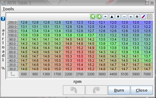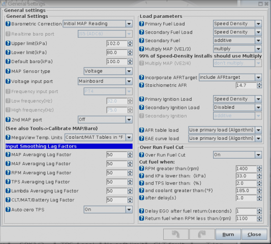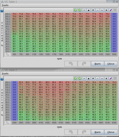 So it took me one afternoon to rip out the stock injection and get the car wired up and started on ms, it's taken me almost three months since to get things to where I'm pretty happy (one month delay thanks to the stock T3 blowing to bits). My car: 83 l28et, p90a head, stock block with at least 206k miles. Last time I tested I had low compression on #6 (110 vs. 145 on rest). My compression tester was stolen along with my truck and I haven't replaced it yet. I think I might have blown the ring back into place while letting VEAL tune the upper regions of my ve table whilst doing 3,500-5,000 rpm on the interstate in 3rd for about 20 minutes last week. It's run silky smooth since that session after the lifters quieted down (I was worried that I had done something bad until I learned that was common with hydraulic lifter setups). The non-stock stuff is: 3" K&N filter in the wheel well under the drivers side headlight, 3" piping up to turbo. same-side ebay fmic ebay type-s bov recirculated via a 1 and 3/8 line back into the intake just before the turbo. EGR is deleted and blocked off. I have had the intake and exhaust manifolds mildly ported by Lonewolf Performance. They also welded a 1/2" T3 spacer onto the exhaust manifold and a 38mm tial wastegate flange as well. I am very happy with their work. 60mm 240sx TB and TPS EM USA external wastegate set to between 15 and 18psi depending on the gear. Holset HY35 (used, fair condition) New, bigger downpipe for Holset with first O2 bung located about 1' downstream of the turbo--catback still whatever came on the car cause it's in good shape and I like the sound characteristics Ebay injectors which are supposed to be high impedance custom versions of the Bosch 403 injectors (~550cc) - so far they seem to be the real deal Palnet 14mm fuel rail Walbro 255 GM flex fuel sensor (the newer one) D585 LS truck coils (round w/ heatsink style) A set of Silverado shorty plug wires A Bosch 505 idle valve (3 wire) A homemade tach adapter Innovate MTX-L wideband and gauge Speedhut electronic fuel pressure gauge Some ebay boost gauge retrofitted in place of the stock boost gauge which is semi-accurate GM open element IAT sensor (between IC and TB) (using the CHTS as the coolant sensor for MS) DIYautotune dizzy trigger wheel DIYautotune supplied MS3/MS3X 3.57 with integrated knock sensor circuit DIYautotune MS3 and MS3X harnesses (recommended -- not a single sync problem since the first startup). I think that's most everything that's relevant to the tune. I've found the flex fuel sensor is working pretty good in tandem with MS3 and I'm able to switch to different blend ratios without it throwing the ve map off. My cold start settings are based on testing with approximately a 60% ethanol blend. There's a decent chance that at the colder temperatures they may foul plugs with pump gas. It started on the third try a little while ago with the block at 13 degrees so I'm pretty satisfied with the settings as they are (tomorrow morning at -10 should be interesting). I'll probably dyno it soon. You can see by my upper VE map that the porting work and bigger intake tract has shifted the peak torque region closer to 4,700rpm, if you've got a bone stock setup you might shift the fat area of the ve table a few hundred rpm to the left. Here are the settings I'm using. I hope these are useful for someone, lord knows I've gotten a lot farther a lot faster than I ever could have without the knowledge on this site and others.