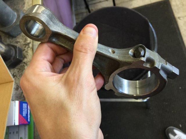 I got my new over bore (+.040 ITM) pistons and I was dropping them off at the machine shop to have them connected to the rods... The machine shop owner wasn't sure about the piston/rod orientation. The rods have oil squirters on one side and the pistons are also marked on one side. Anyone know which way these line up? Pictures attached: