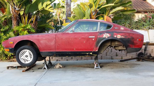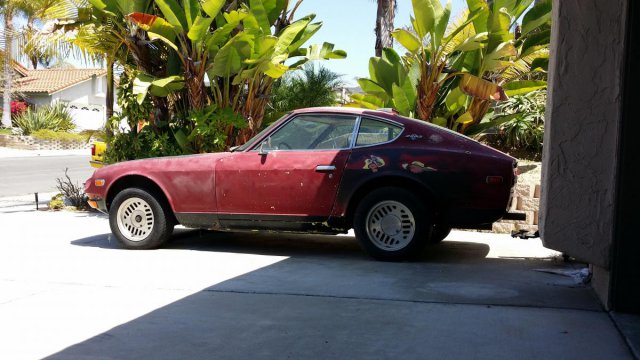 About me I don't want to go too in depth and bore anyone, so feel free to skip. lol My name is Kyle. I'm from Oregon City, Oregon. I'm in the USAF so that's why I am in CA. My current car is a 2008 Honda Accord V6 Manual 6 speed. It's a fantastic and very reliable car. Nice interior and sleek looking exterior. Just a good all around daily. And its the first car I have driven with a stick, and boy did I love it! I have spent a couple years with it, but after increasing its power steadily, I realized the limits and problems with a forward driven car. Not to mention the absolute BS that is California smog. I was at the point of either spend the money on a power adder, or a new car. I decided it wasn't worth pouring more money into a car that had such limitations. Especially in size and weight, she just wasn't very good in the twisties and back roads, so I decided I wanted a Rear driven pre- 1975 car. After a length of time searching, I couldn't believe what an awesome find a 240z was! A small, lightweight, Japanese car, pre- 75, endless parts, huge forum support, the list goes on! I was sold! The Car While on leave back in Oregon for a week, after 3 months of searching for a good deal on a 240z, one popped up for sale for $3,500. Super cheap! It was a 1972 240z with a Chevy small block V8, with a 3 speed automatic. A lot of people had interest, so decided I was done searching, and ready to start building; I bought her outright. Here is the AD: The Good -V8 Swap -The Trunk area, engine bay, and I (hope) under fenders were sprayed with bedliner -Body panels are straight -Badge and side marker light delete -Its a 240z The Bad (As I have quickly, or slowly discovered) -The paint is awful, and needs to be redone (Huge amount peeling) -The windshield wiper doesn't work -The heater doesn't work -The Air Blower doesn't work -The dash was cracked in multiple places -The passenger door was missing the interior panel -The engine, differential, and transmission were pissing oil -The hatch strut was blown -The lights were all extremely dim -The car got less than 8 MPG -Seats are cheap aftermarket ones. Fit nice though actually -You have to SLAM. And I mean SLAM the doors to get them to shut. I'm scared I'll shatter the glass! -The passenger window won't roll down -Probably a lot more I'm forgetting So yes, the car needed work. A lot of it. Was it awesome to drive and own a V8 car? Yes. Yes it was. I only had a few days of leave left, and I sadly realized I couldn't take her with me. Especially with the gas mileage at aircraft carrier fuel consumption rates. On the last night, I took my friend out for a spin, and very soon after leaving the driveway we could smell something burning. It was too foggy to drive fast, so we turned around and went home. I ended up leaving the car at my friends garage, which happens to live only a couple houses down from my dads. Here is the car next to his yellow V6 Mustang: We pulled the windshield wiper motor, the dashboard, the heater blower assembly, cut out random disconnected (and unsafe) wires and taped them up, and cleaned and vacuumed any debris. I loaded the dashboard and wire harness into my car to take back to Cali so I could be somewhat productive for the next 6+ months. Later my friend discovered that the wire harness caught fire in the engine bay! And the harness I had, was melted in multiple places. I decided to scrap it. I will need an entirely new wire harness. What I have been doing Research. Researching like a crazy person. I have also been buying parts like crazy and shipping them to Oregon. Since I'm stuck here, I: -Fixed the Dash Cracks / Sanded / Painted -New Vents -New glove box setup and badge -Autometer gauges -Realized the wire harness I had was hopeless after attempting repair My Friend has been inspecting parts that I send him, and tinkering on the car. -Sold Engine / Tranny / Radiator / exhaust for 750.00 -Sold Bumper -Sold Fuel tank Has a total of 1k. So the car as a roller was 2,500. Even cheaper! What Happens Now I am taking 30 days of leave starting on 20July2016. I plan to: -Sell the Honda -Engine Swap the Z to an LS motor. -Make the 240z my new DD. Here is the car as it is today. My friend installed the $420.00 Fender Mirrors, and there is the photo of the horrible quality Retro-Spec spoiler sitting on the hatch just to see what it looks like: That's it for now. Later I will post shots of my excel sheet of costs, future plans, ect.