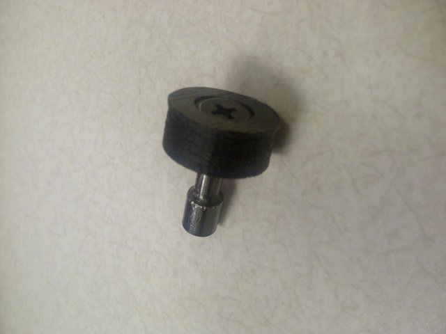 So I've got a couple other threads about Printing car parts on my 3d printer. Well on my 300zx, the upper window pin again broke yesterday. This allows air to whistle while driving and water to leak in with the rain. I'm tired of tearing the door apare to fix a cheaply made part. So, I started looking into what can be done to fix this issue. Well the stock pin has a white plastic ring around a metal ball end, allowing for some movement. The plastic is what breaks. I looked at it and figures a 5/16" washer would almost fit over the ball portion, but would not fit past it. That woudl be enough to hold the pin in place, but I'm not certain if it required much more than that to keep it from rattling or wearing badly. I got into PTC Creo and desiged a new round bottom portion which would allow the pin to slide in the track AND incorporate the 5/16" washer. I printed it up on my Mendel Prusa 3d printer at .1mm layer height, and a .5mm nozzle. at 80% infill. This created a very strong part with a little xacto persuasion I was able to fit the stock metal door pin and now I've got a new slider made from ABS which should work well. The phillips head is lightly recessed for grease to fill and I will glue the washer into place. This looks like a very good solution for a part that breaks all too often. If you end up needing one of these, let me know, I'll sell it cheap. picts below: I'll add more picts when I get to install it probably this weekend. Phar