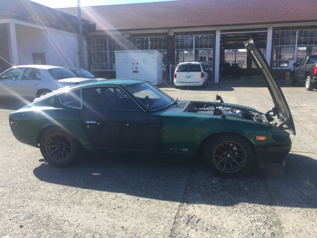 🤒 Got her about 3 weeks ago. Has quite a bit done already. BC racing coil overs, polyurethane bushings. New brake cylinders, fuel cell, fuel rail, Ford 508 fuel injectors, full custom straight pipe exhaust &, of course, the Megasquirt system that runs to a crank thingy and O2 sensors. I just switched out the oil pan gasket since it was completely covered in oil underneath. I sprayed it with some heat resistant paint. Bleed the brakes with limited success (still don’t feel good). I installed the noico sound and heat insulation near the shift boot opening and still need to work on adding sound insulation later. Everyone keeps telling me to keep the stock L28 so I plan on just adding a 280ZX Turbo later on. ive read a lot of information here and had some help on Facebook as well. My car knowledge is limited so I’ll be searching the forums for a complete parts listing to turbo her and information on interior parts and installation! Please dont tell me about the fender mirror placement, I’ve heard it enlighten already. I took it to a body work specialist and he said I’d be better off wrapping the car after getting it Epoxied. Does anyone know around what price range I can expect for and epoxy and wrap? And can I just leave it epoxied until I’m ready for wrapping?
