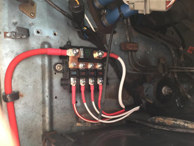 Interior box has all the fuel injection relays & fuses in their own section. Then normal car body fuses. Then a panel with a 50 amp accessory relay, a ignition relay, horn relay & headlight relay. The ignition switch now only carries the load of the two relays. There is a forth section with 6 micro relays that is for expansion in the future.