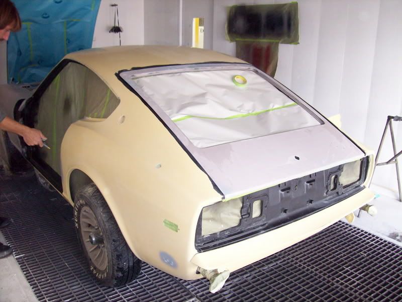 MusPuppis Posted October 19, 2006 Share Posted October 19, 2006 Ok, details first my dear and then the pictures.. or something. Yeah.. '78 Black Pearl 280z. Rags brought it down from Jersey for body work and paint. If anyone remembers my "So you want your Z painted" thread, its that one! Painted and body worked for the materials cost only, as a way of saying thanks to the community. These pics are of the Z in final masking and then sealed. By all rights we should have spent the day not sealing and prepping but wetsanding and buffing, cause the damn thing should have been in color and under an asston of clear YESTERDAY, but I am a student and so subject to the wretched whims and massive idiocy of my classmates. They arent allowed to touch the car, only myself, Bryan and Donnie (the fellow you see in some of the pics) But they still manage to get in the way and throw me off. Like when a few of the yokels primed a bumper 4 feet from the Z right after I finished wetsanding it.. Overspray? Oh yeah. Whole back end had to be re-sanded. Then they took, literally, an 8 hour day to paint th hatch on am SUV. 8 hours just to mask and spray color on a hatch... Not to mentioned some mystery scratchs on the doors no one will own up to. I had a small melt down about those. The end result is two days behind where we should be, but we're still chugging along and first thing tomarrow morning when I get to school im hosing down the booth, cleaning it up WELL, and sprayng color and god help any idiot that gets in my damn way or opens that booth door when Im in there. I'm gonna kill em dead with my bare hands, lol. Further details on the car will have to come from rags as I dont know what motor is planned for her or just what the car will be when its done. what i do know is its gonna be Black Pearl and massively sexy, Rags will be finishing the build, Im just doing the paint and body work (to his extreme credit though Rags had done a fair amount of body work to it already and it was top knotch,) and his work is stellar, so this should be one fine ass Z when its back on the road. Hopefully tomarrow will see my posting some pics of her in color and then in clear! In the meantime, here ya go; (Oh, notice donnie not in a paint suit? Me either, both ours were stolen earlier this week.. see why Im a little irritated with my classmates? ha) Quote Link to comment Share on other sites More sharing options...